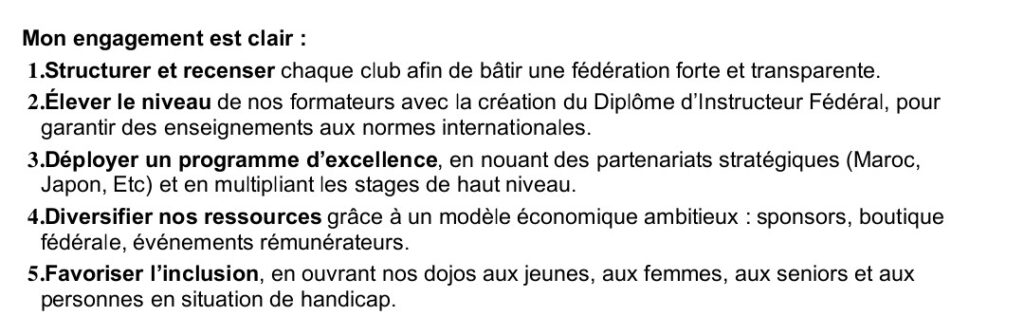 Un projet ambitieux qui repose sur cinq (5) piliers essentiels . Celui-ci ambitionne également de redonner à la Fegakama ses lettres de noblesse au point de s’arrimer aux standards internationaux . Ne l’oublions pas , le karaté gabonais a très bonne presse sur le continent .