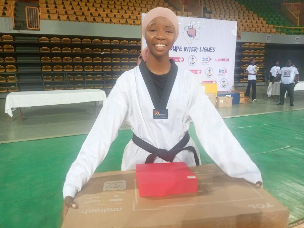 C’est fort de cet ensemble des erreurs d’arbitrage enregistré, que l’athlète Coumba Magassa de la ligue de taekwondo du Haut Ogooué a été désignée meilleure combattante féminin et obtient un téléviseur dernière génération ,une raquette et une médaille.