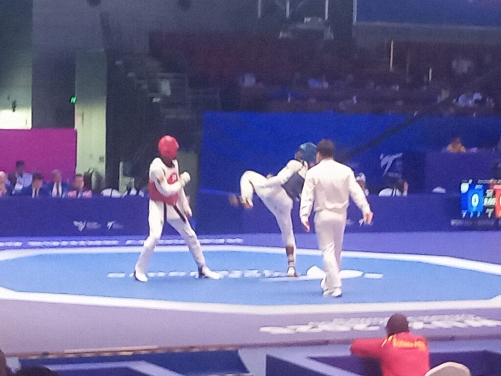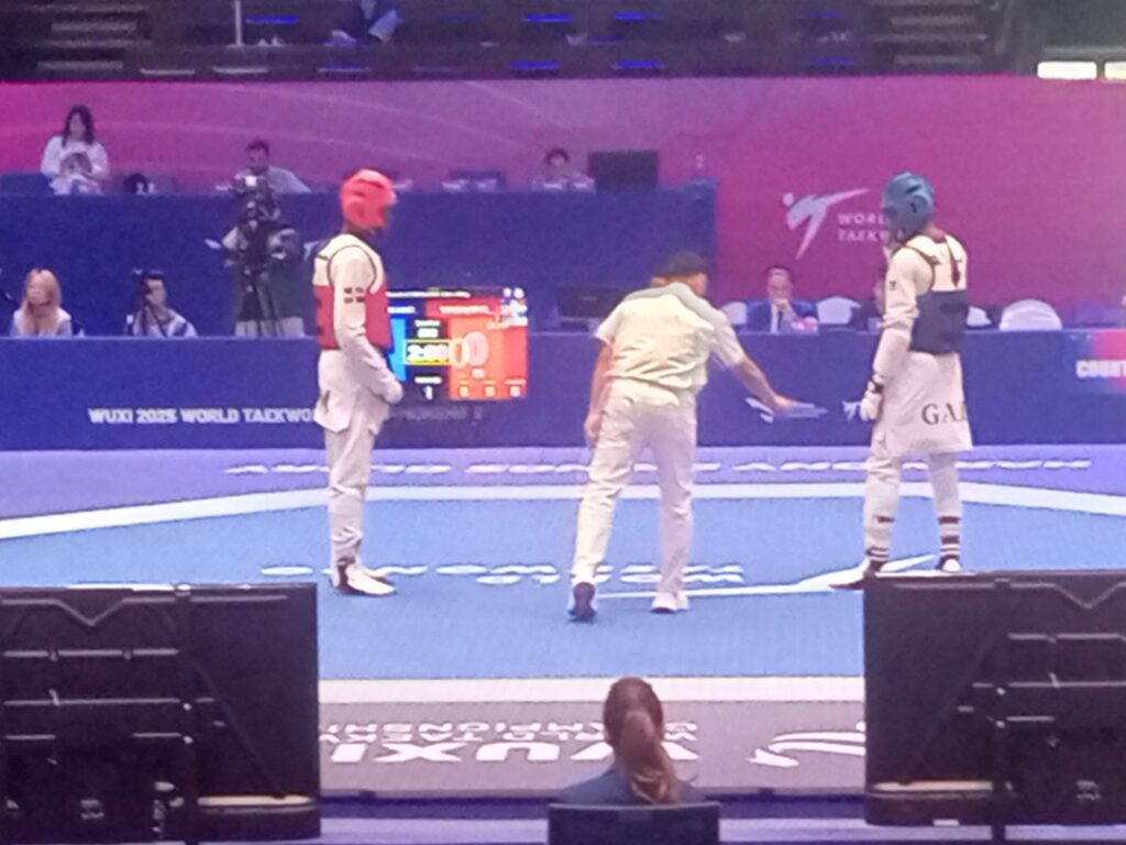 Wuxi , le 28 octobre 2025 ( Cafesportplus.ga) . Personne ne l’attendait à ce niveau de la compétition . Jérémie Landou (-68kg) et natif de la commune d’Owendo a fait sensation aujourd’hui au Centre international des expositions Taihu. Non seulement ,il a sorti au premier tour le Dominicain Gonzalez Wander au 3e round (1-1) et (15/3) . Avant de se faire écarter par le champion d’Afrique et numéro 6 mondial Ibrahim Maiga (1-1) après un (13/0) du gabonais , il tombe à la fin (13/7) les armes à la main .