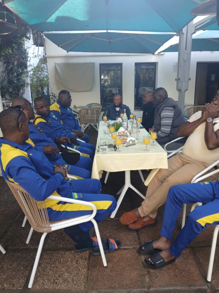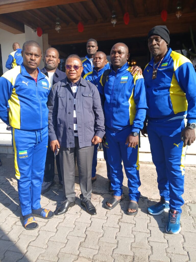 Libreville , le 13 décembre 2025 ( Cafesportplus.ga) . Présent à Hammamet en Tunisie depuis quelques jours dans le cadre des championnats d’Afrique de Ju-jitsu . La sélection nationale Gabonaise a reçu ce samedi la visite de son Excellence Pierre Ntsiet Ngolo , Ambassadeur du Gabon en poste à Tunis. Objectif de cette visite , apporter son soutien et celui de la République aux Panthères ,version Ju-jitsu.
