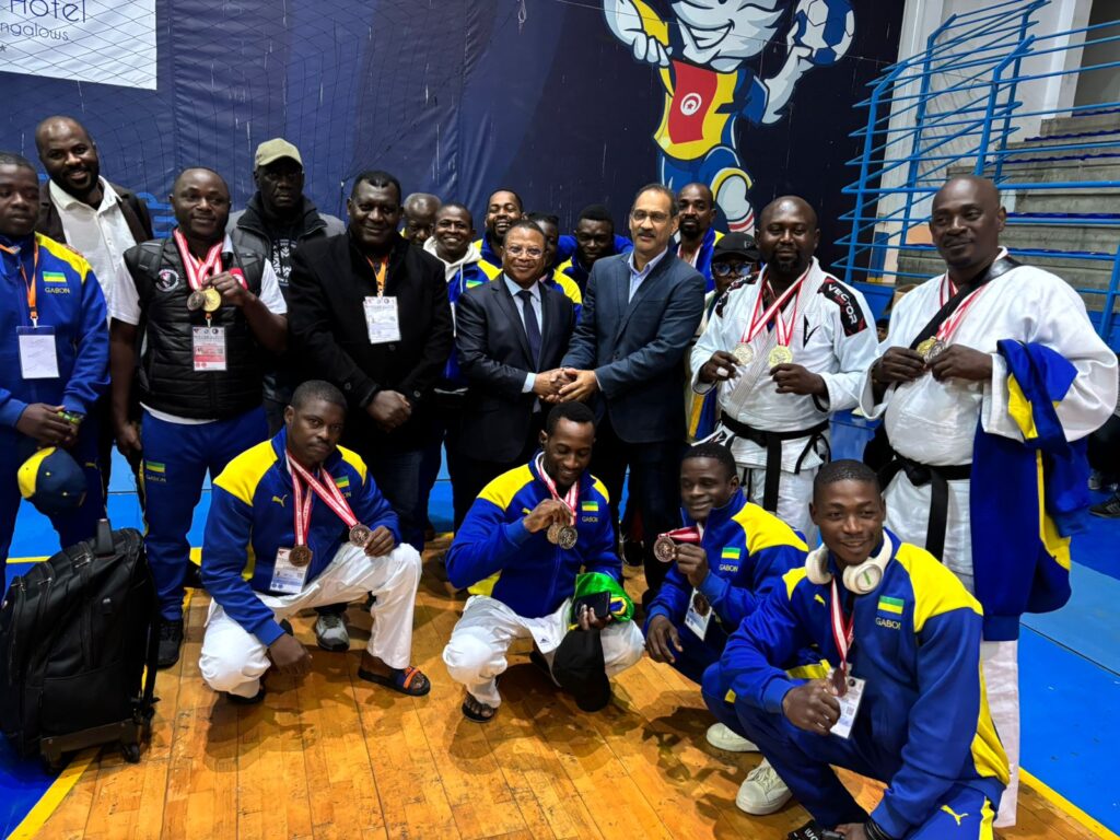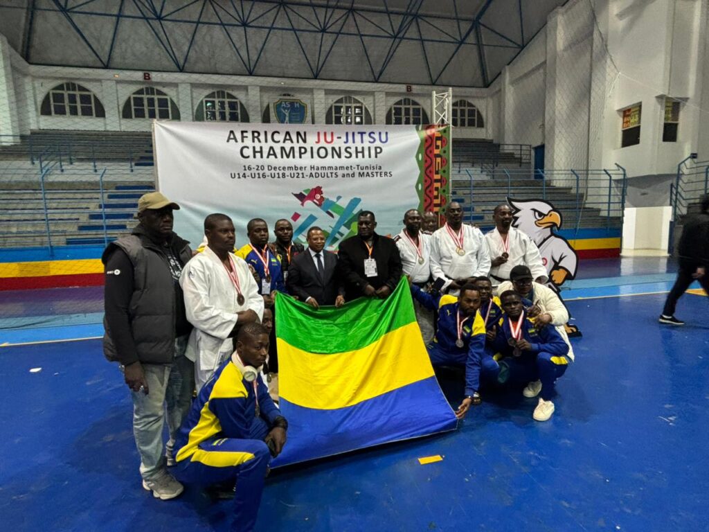 Libreville , le 21 décembre 2025 ( Cafesportplus.ga ) . Douze (12) médailles remportées par le Gabon au championnat d’Afrique de Ju-jitsu 2025 organisé à Hammamet en Tunisie soit (2 Or , 5 Argent et 8 Bronze ). Au grand jamais , le Gabon n’a fait sensation dans cette discipline sur le continent comme se fut le cas cette fin de semaine avec deux titres de champion d’Afrique et cinq vice-champions.