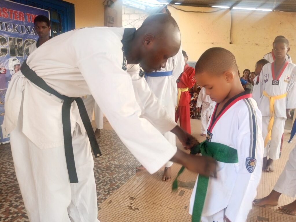 Au final ,c’est l’élève âgé de six (6) ans Cervy Dave Biyogo Ndong Meye précédemment ceinture jaune qui a surclassé ses concurrents en claquant une moyenne de ‘9/10’ avec un total de ’38’ points et termine major de sa promotion en obtenant la ceinture verte qui est le fruit d’un travail acharné .