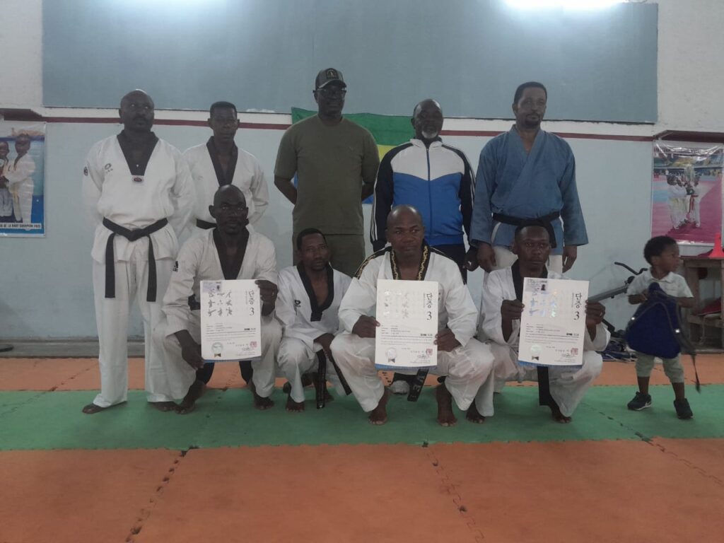 Libreville , le 9 février 2026 ( Cafesportplus.ga) . Cinq ans après sa création sur le plan national , l’école nationale de taekwondo sourit de la plus belle des manières avec cette remise de des diplômes Kukkiwon à trois récipiendaires. Mise en place dans l’objectif de la remise à niveau des vétérans ,et encadreurs..L’école nationale de taekwondo se voit aujourd’hui Honoré par trois maîtres élevés au rang de ceinture noire .